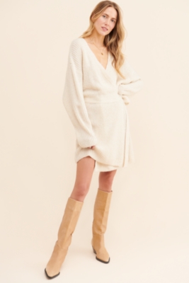 Rosemary Wrap Sweater Dress Off White Beam Boutique
